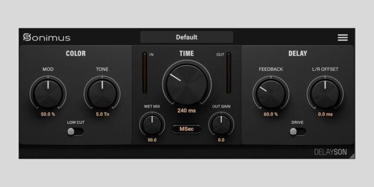 Sonimus has released DelaySon, a free analog-style delay plugin for macOS and Windows.