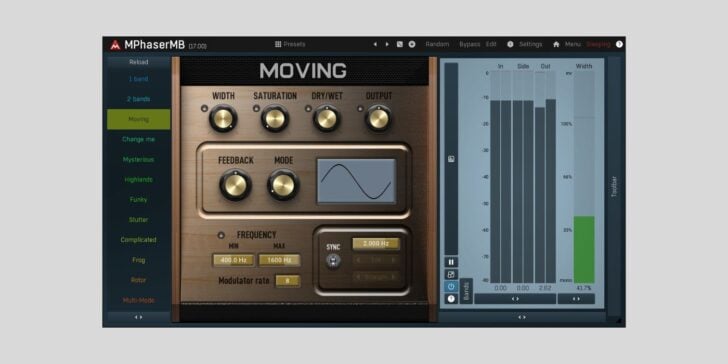 MPhaserMB gives you up to 100 filters and 6 bands with customizable shape, saturation, and synchronization. If you’re into surgical control or just like experimenting with crazy settings, you have ample room to do so with this plugin.