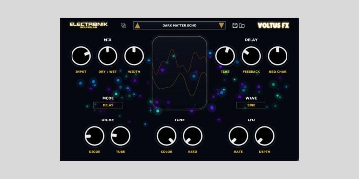 Electronik Sound Lab has released Voltus FX, a free multi-effect plugin for Windows that combines a BBD-style delay, dual-stage saturation, a six-waveform LFO, and a state variable filter in a single plugin.